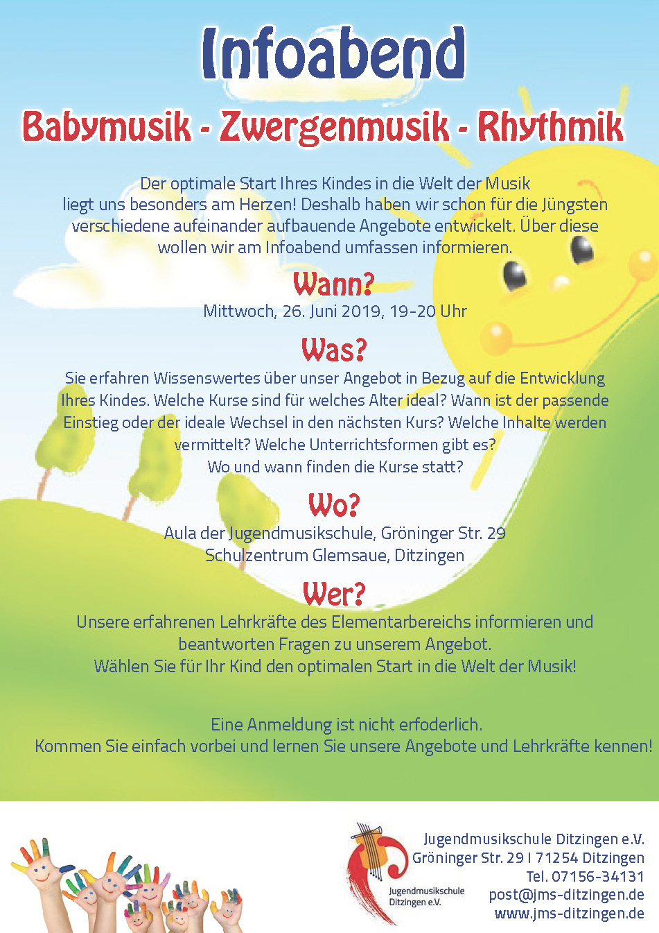 Der optimale Start Ihres Kindes in die Welt der Musik liegt uns besonders am Herzen! Deshalb haben wir schon für die Jüngsten verschiedene aufeinander aufbauende Angebote entwickelt. Über diese wollen wir am Infoabend umfassend informieren.