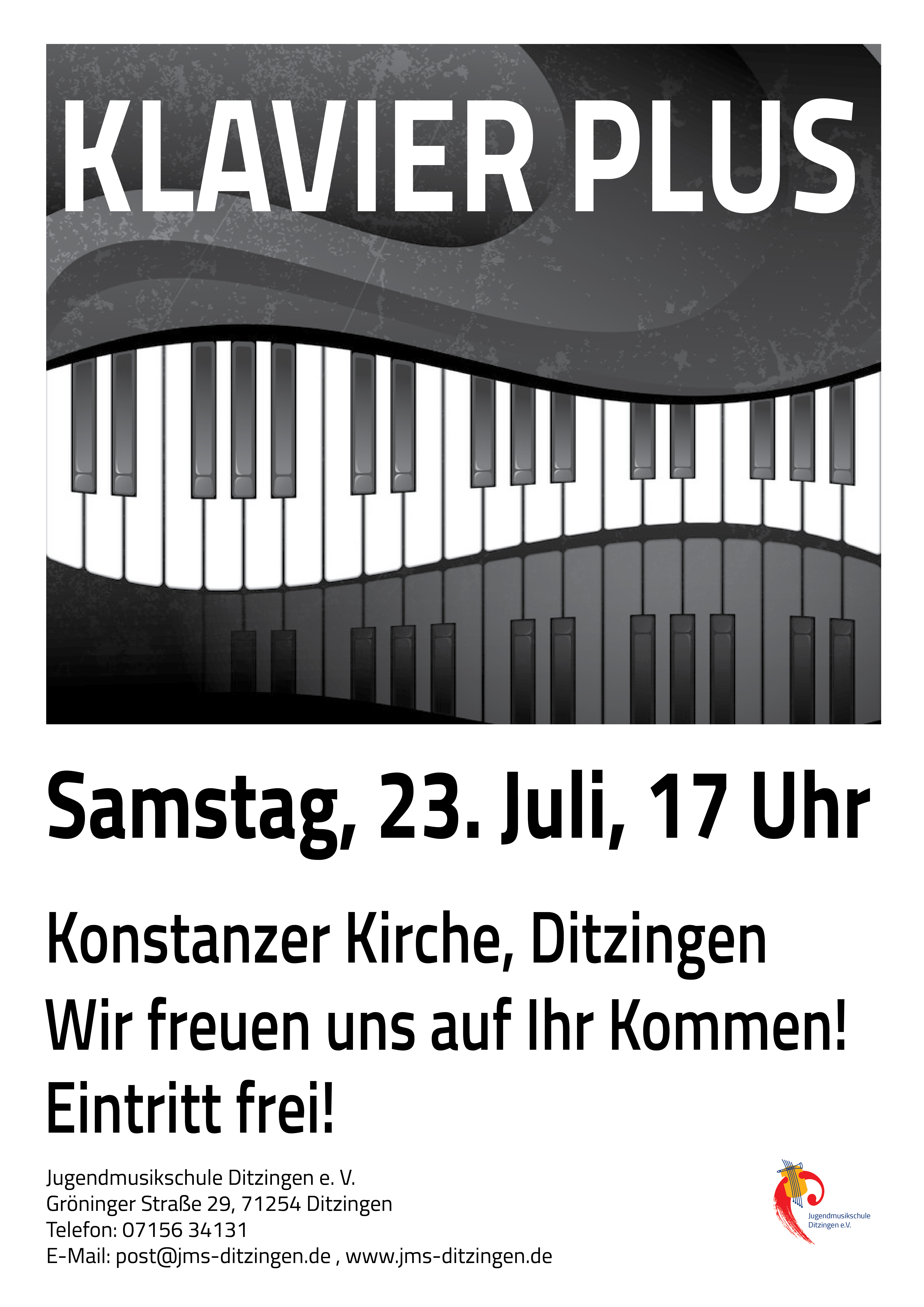 Mit einem bunten Strauß an Kammermusik und Solostücken präsentiert sich er Fachbereich Klavier der JMS. Schüler aller Altersklassen musizieren gemeinsam mit verschiedenen Instrumenten und Gesang: mit dabei sind Violine, Cello und Posaune. Dazwischen werden unterschiedlichste Stücke für Klavier solo oder Klavier vierhändig vorgetragen. Von Frédéric Chopin bis Robert Schumann und von Edvard Grieg bis Eroll Garner erwartet Sie ein abwechslungsreicher Abend rund ums Klavier!